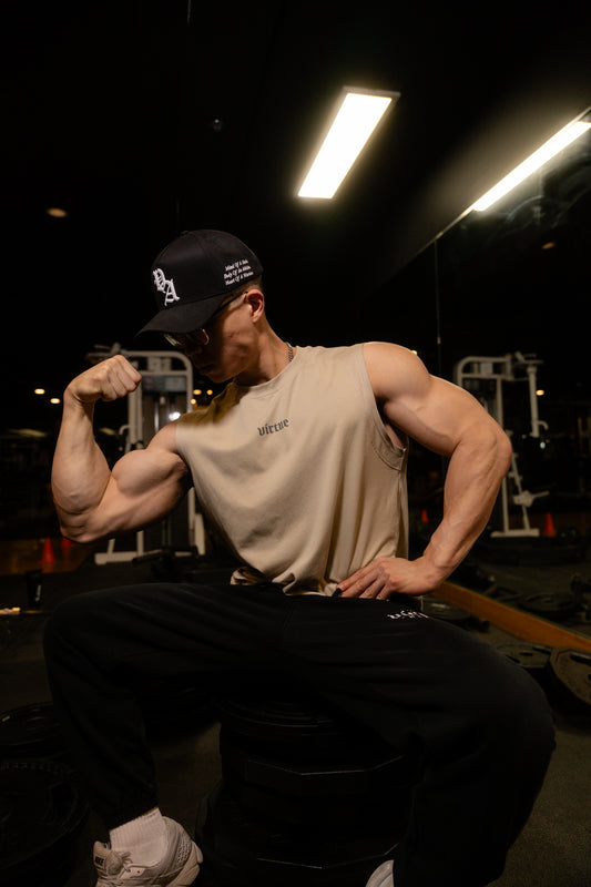 Virtue Athletics Reflective Cut Off Tank - Beige